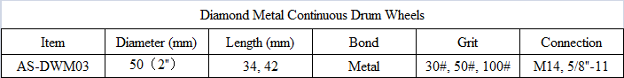 Diamond metal continuous drum wheels are excellent for heavy stock removal on granite and hard stone grinding away excess stone to prepare for polishing.Diamond polishing drum wheel is used for polishing stone side after finishing zero tolerance wheel. They are available in a variety of size for any application, and different grits are also available for softer stones. The thread is standard.
